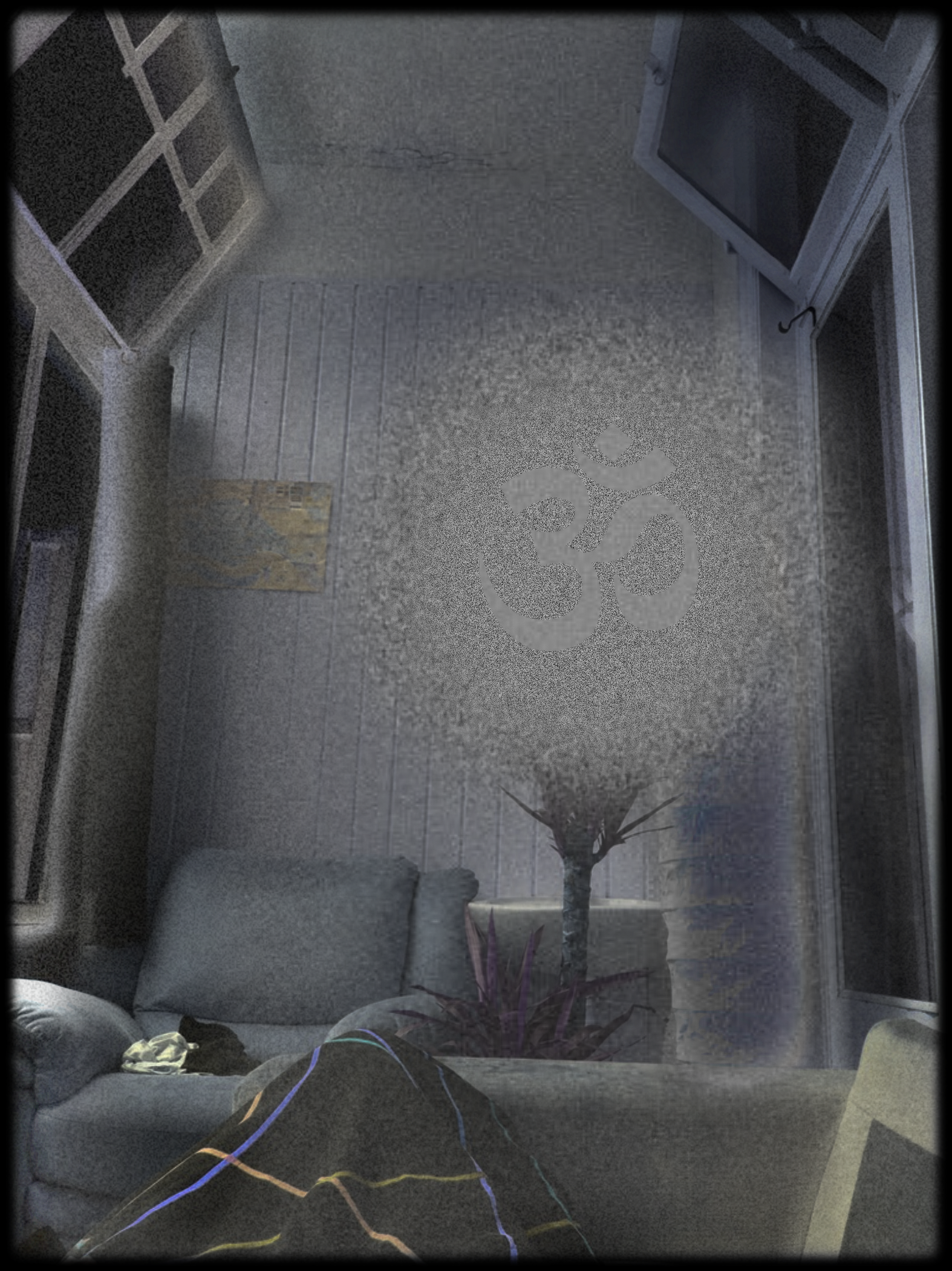 What happens with the hallucination with intensified visual snow/'ethereal light' is that it has a certain ethereal, calm presence about it. When things move slightly, like a curtain in the wind, it may seem like the moving curtain is someone moving (it). This is the aura 'speaking' through the curtain, which is possible because of these (psychic) pressure fields.